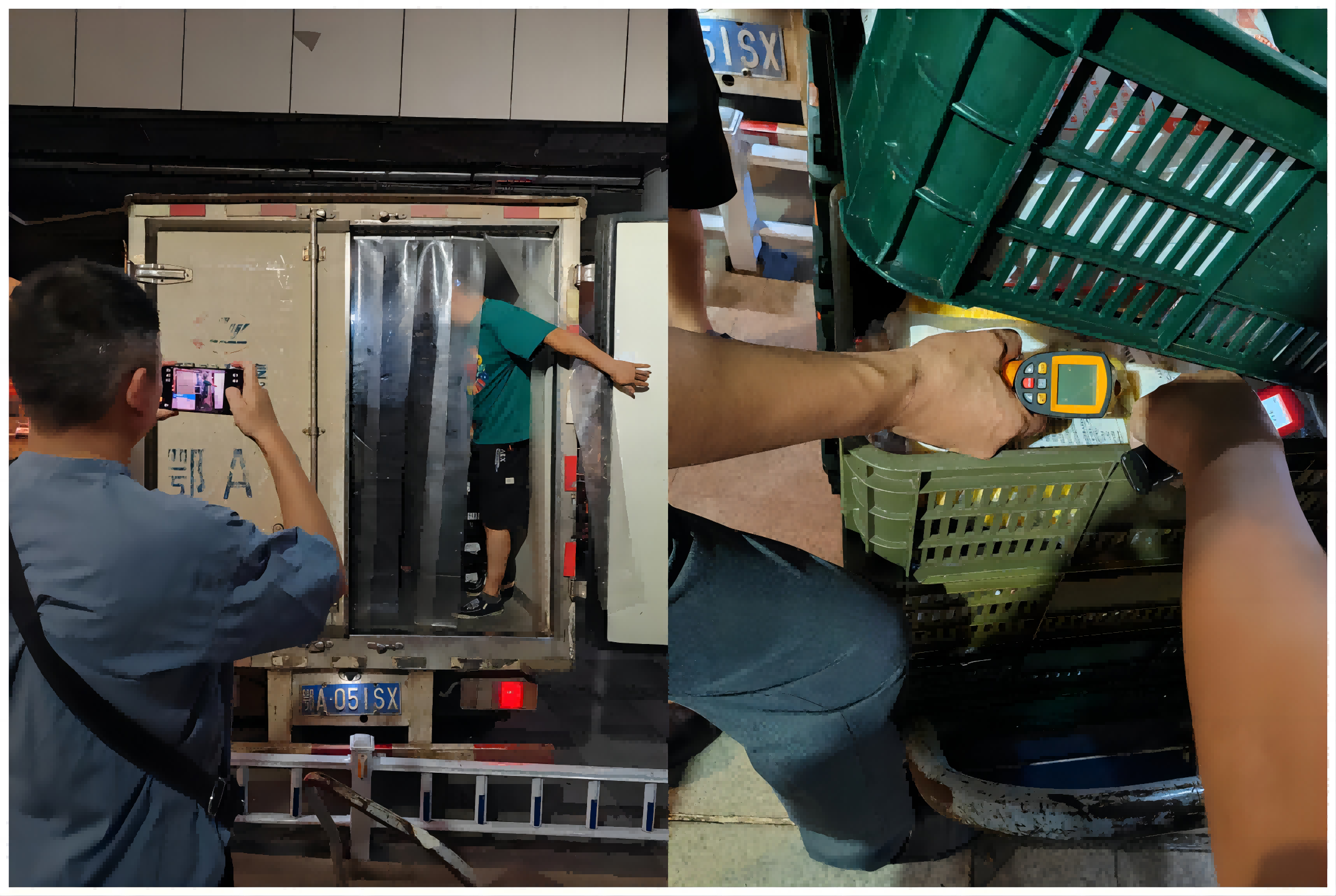 在夜巡检查过程中,管理人员兵分两路,随机抽查了便利店、大仓储、小超市门店,对物流公司车辆夜配服务情况、车辆制冷机保开启状况、车辆隔温帘安装使用、车辆内外卫生情况、车箱温度、商品温度进行了检查。巡查中,冷藏车厢测温均在10℃以下,冷冻保温箱温度-30℃以下,商品抽查情况完好,车辆温度均在冷链配送范围内,相关门店反馈满意度较高。